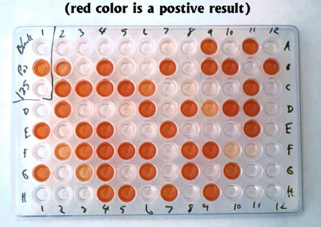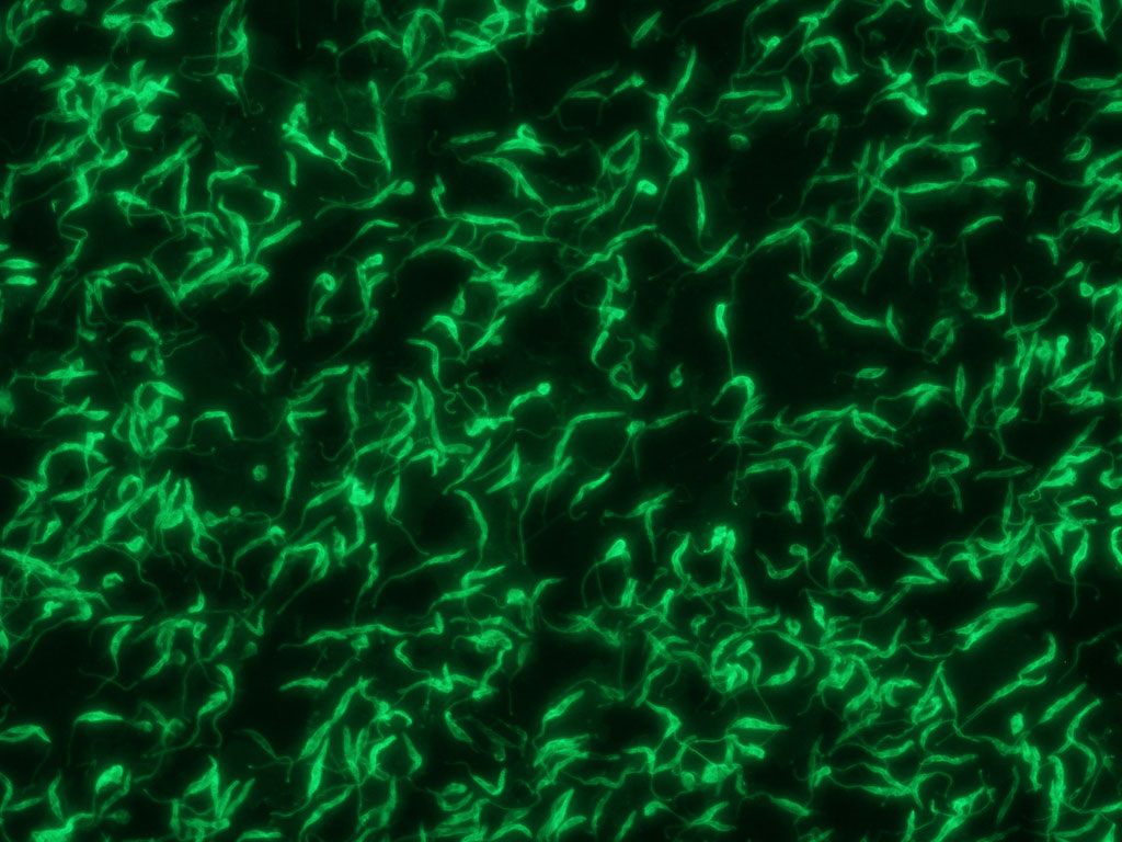 Beim Testverfahren IFAT werden den Verdünnungsstufen des Blutes (z.B. 1:40, 1:80) fluoreszierende Farbstoffe zugesetzt welche die Antikörper farbig markieren. Die Verdünnungsstufe bei welcher die Farbreaktion im Mikroskop noch nachgewiesen werden kann, bestimmt den Antikörper-Titer.