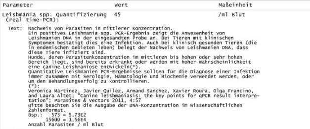 Auch hier kann bei einem „negativen“ Ergebnis die Leishmaniose nicht vollständig ausgeschlossen werden. Es belegt lediglich das in dieser Probe (Blut oder Gewebe) keine Parasiten zu finden waren.